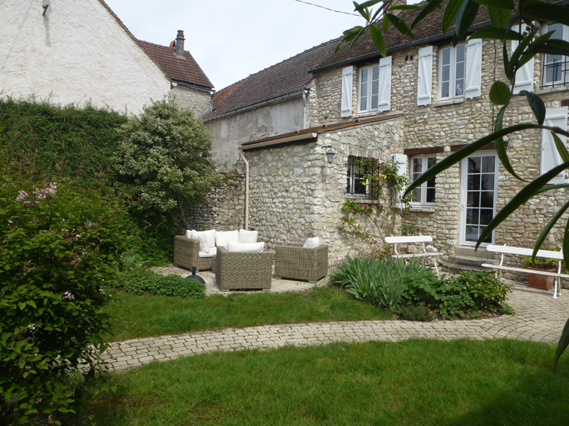 La maison est située au bout de la rue principale, très peu passante. Pas de nuisance sonore, la liberté de laisser les enfants circuler en vélo. Les commerces sont à moins de 3 km, au village de Vert, ou à Septeuil.