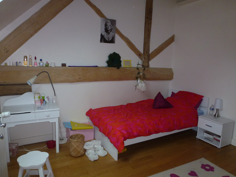 Cette maison fut la nôtre pendant 15 ans avec nos trois enfants, notre fils y est né. Nos enfants y ont grandi en sécurité. Aujourd'hui il est temps pour nous de nous rapprocher de la ville. Nous avons aimé la jolie nature environnante, le calme, l'école et les relations de village. Nous regretterons cette maison si originale avec ses différents niveaux, son patio idéal pour des petits déjeuners et déjeuners au soleil, son jardin à l'ouest ensoleillé jusqu'au soir, sa grande cheminée pour les soirs d'hiver. A l'étage, les chambres sont proches tout en préservant l'intimité des uns et des autres.